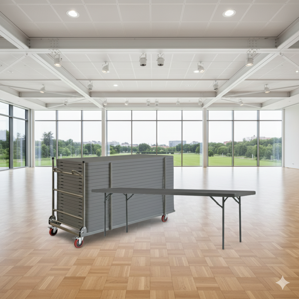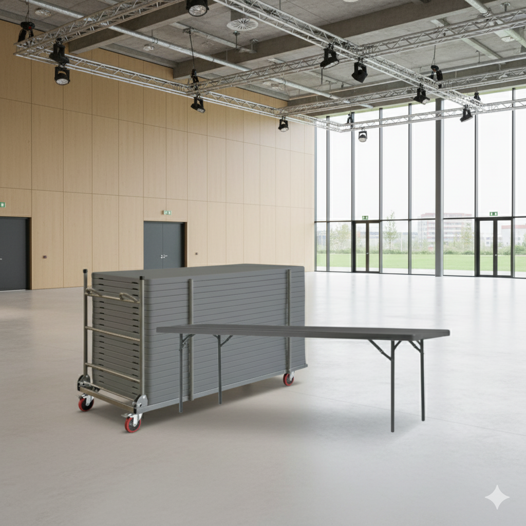 Gør dine store arrangementer enkle og professionelle – bestil denne sampakke med 18 240XL borde og gratis vogn i dag.