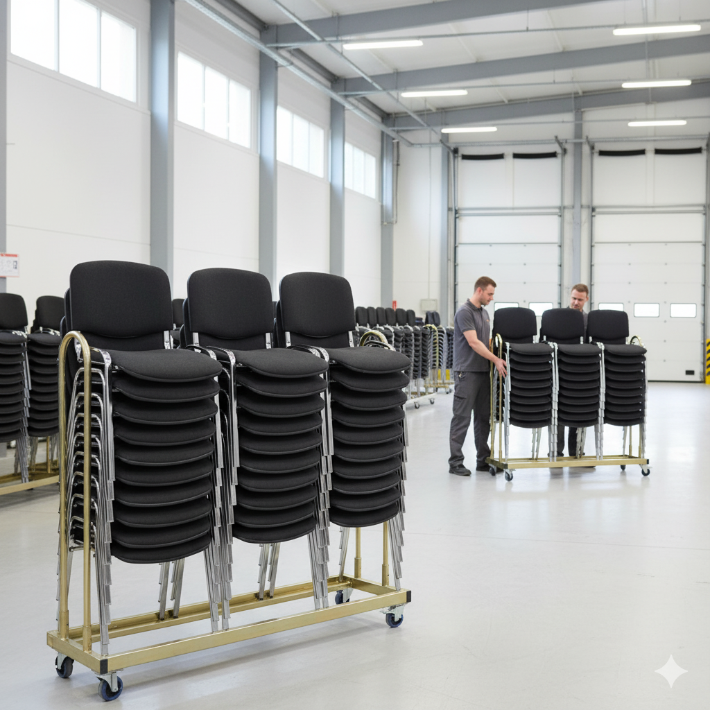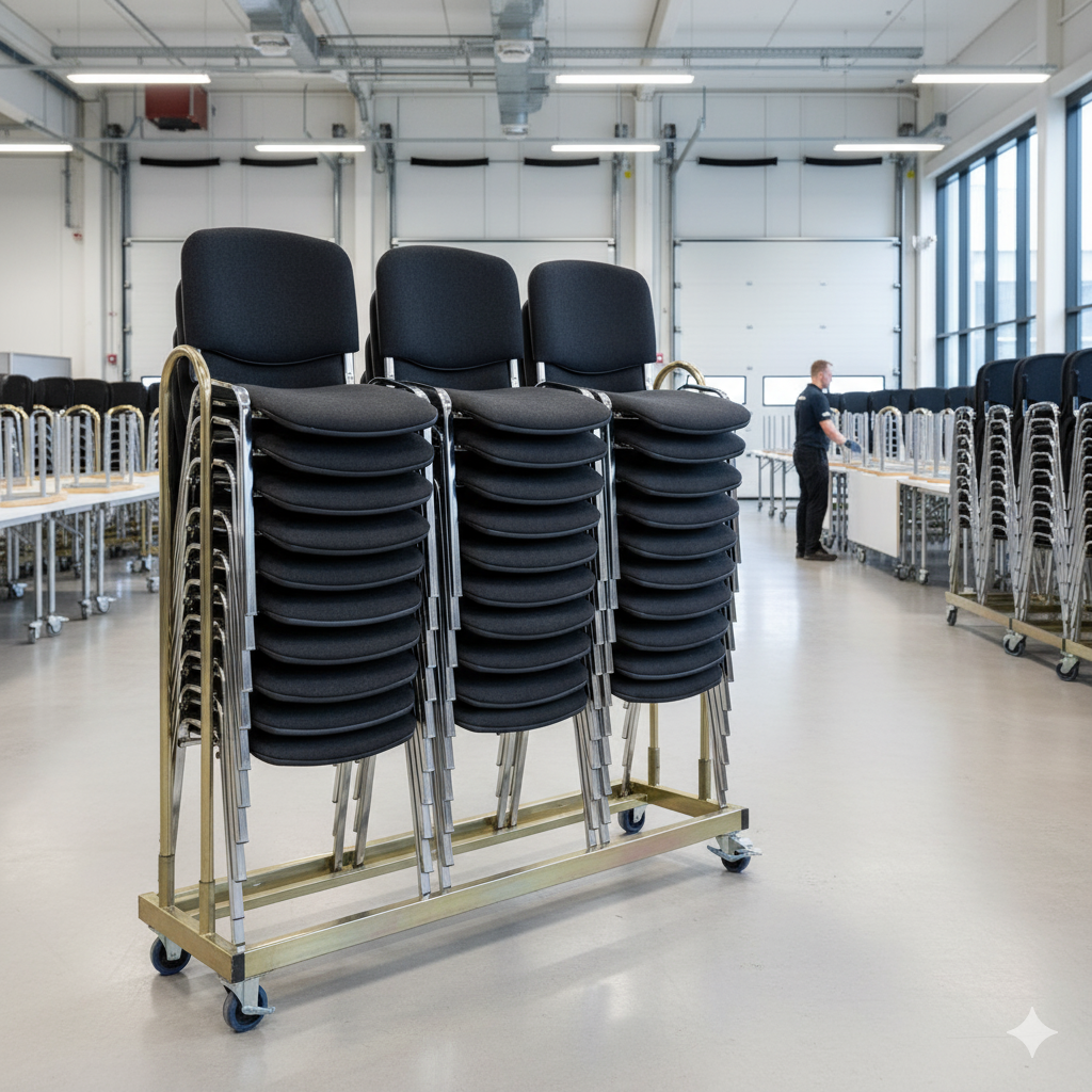 Denne pakkeløsning med 30 polstrede stabelstole i sort og gratis stolevogn er et fremragende valg til konferencesteder, uddannelsesinstitutioner, hoteller og eventarrangører, der ønsker en fleksibel og økonomisk siddepladsløsning.