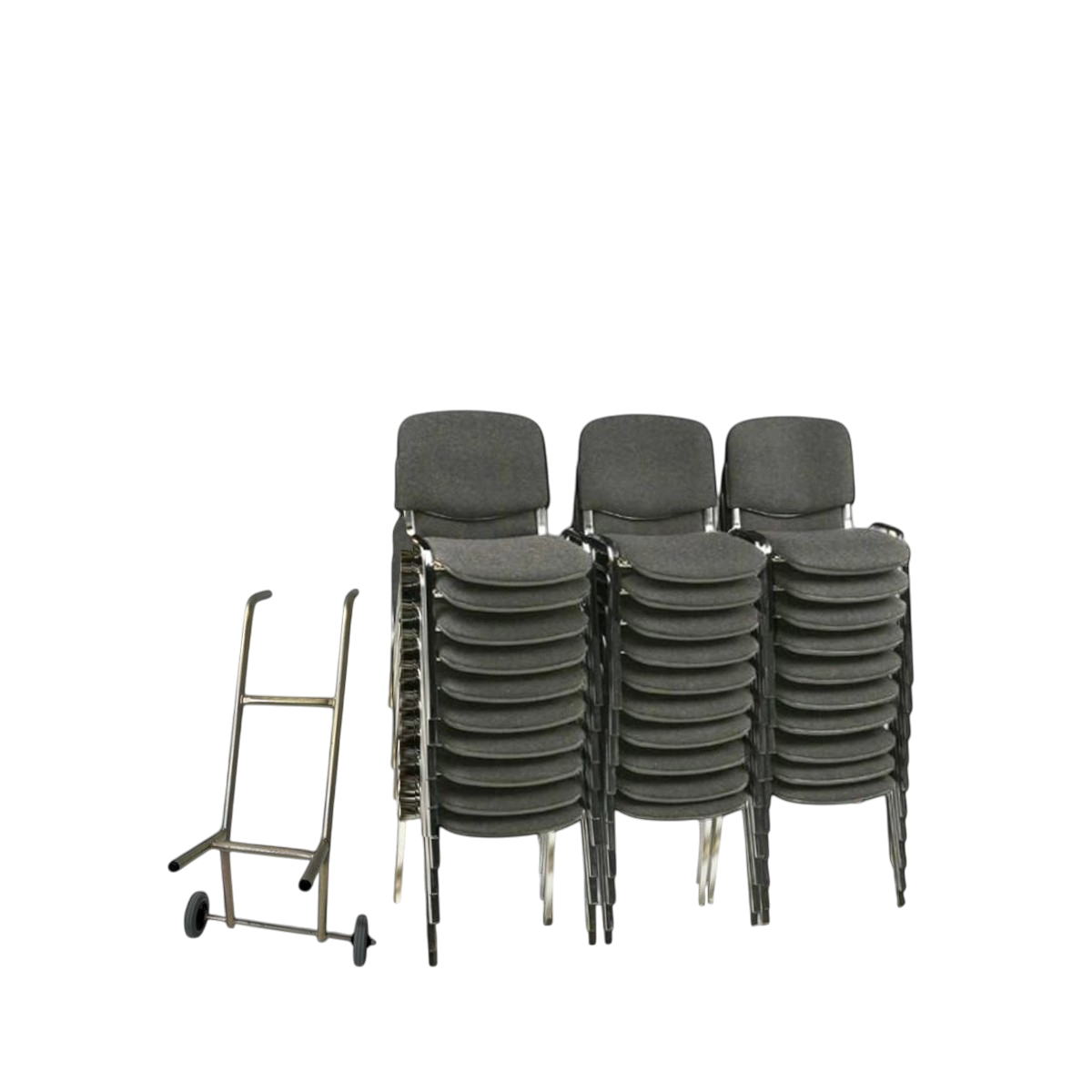 30 Økonomi Polster stabelstole i mørkegrå inkl. gratis universalvogn – Prisvenlig og praktisk løsning til professionelle miljøer