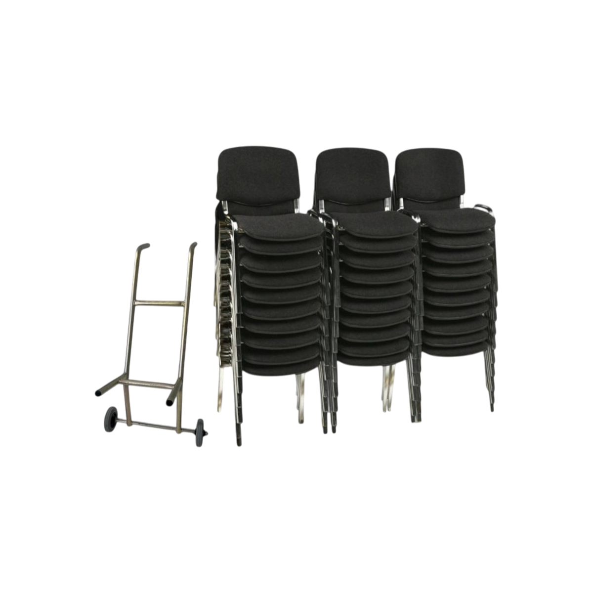 Opgrader din indretning med denne budgetvenlige pakkeløsning, der indeholder 30 slidstærke og komfortable stabelstole med polstring i sort samt en gratis universalvogn med plads til 10 stole ad gangen. Perfekt til mødelokaler, kantiner, forsamlingshuse og uddannelsesmiljøer, hvor både funktionalitet og mobilitet er i fokus.