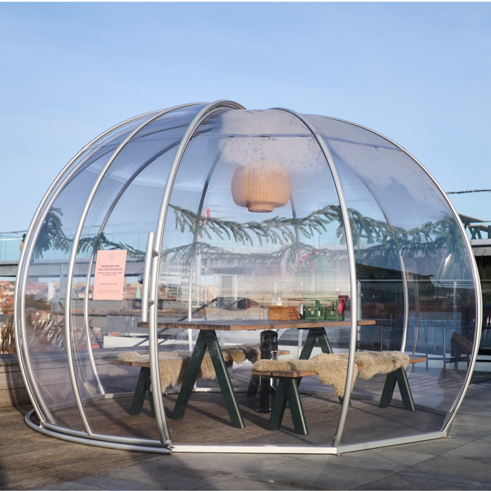 • Robust og holdbar: Bygget med en solid aluminiumsramme og et slidstærkt, gennemsigtigt PVC-cover, er denne igloo skabt til at modstå vind og vejr året rundt.