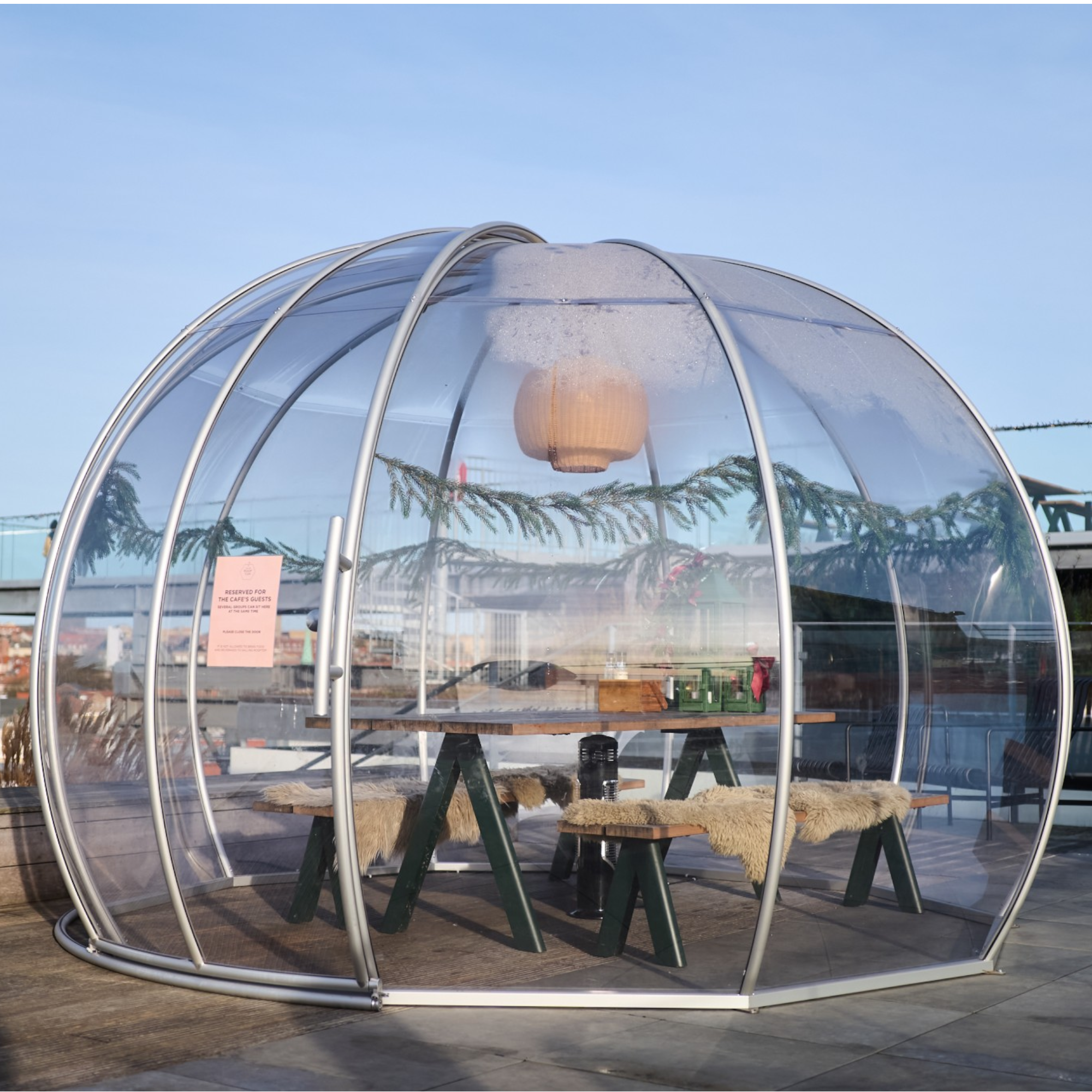 - Robust og holdbar: Bygget med en solid aluminiumsramme og et slidstærkt, gennemsigtigt PVC-cover, er denne igloo skabt til at modstå vind og vejr året rundt.