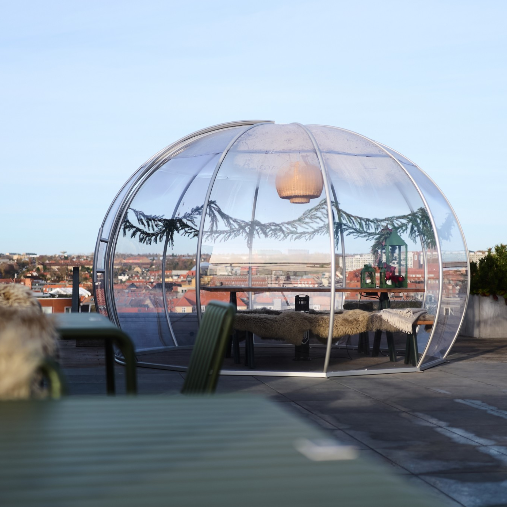 Med Astreea® Igloo MAX XL kan du udnytte dit udendørsareal til fulde – sommer som vinter. Det gennemsigtige design giver en fantastisk panoramaudsigt, mens den tætte konstruktion beskytter mod vind og regn. Tilføj varmeapparater og bløde møbler for at skabe den ultimative hygge-stemning, selv på de koldeste dage.