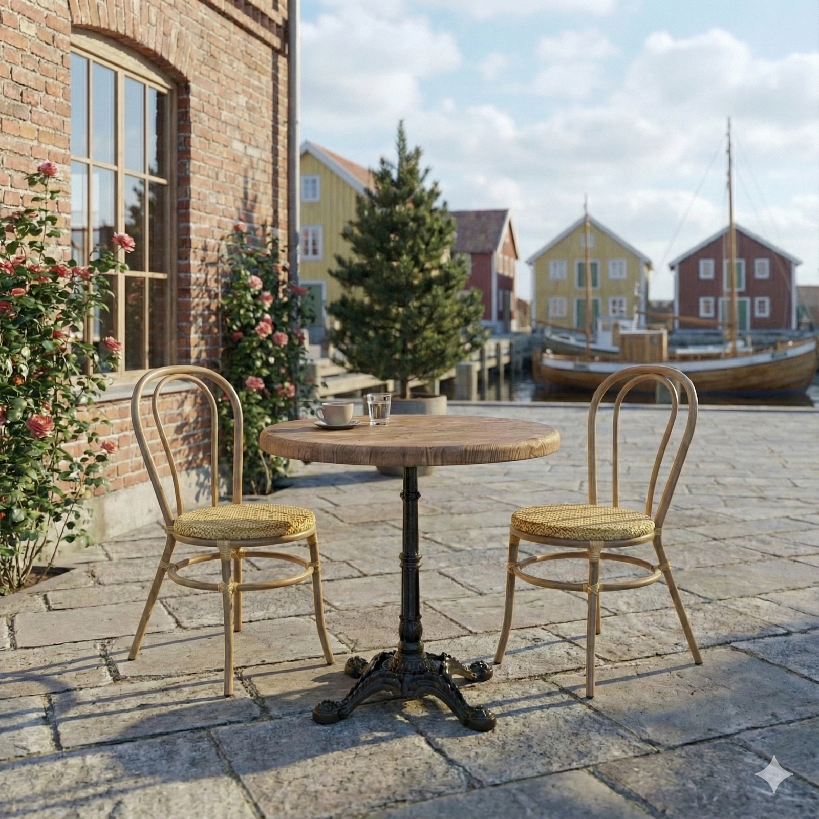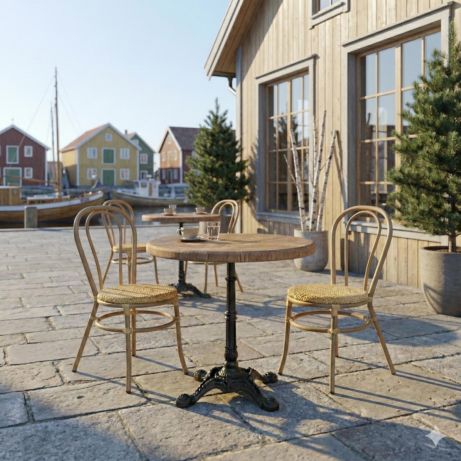 Den runde form understøtter en fleksibel bordopstilling og bidrager til en behagelig gæsteoplevelse, hvor pladsen udnyttes optimalt. En driftssikker løsning for professionelle, der ønsker trælookets varme æstetik kombineret med lang levetid og lav vedligeholdelse – både indendørs og udendørs.