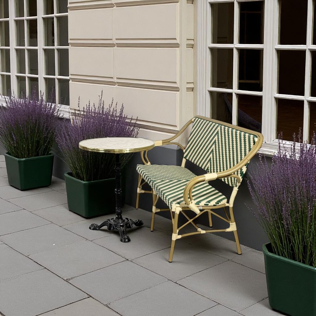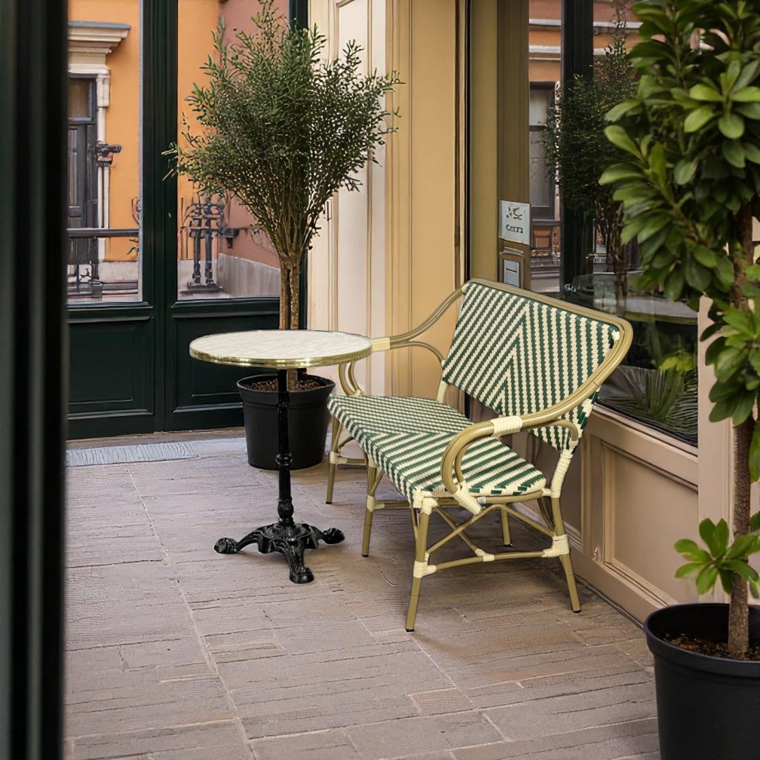 Cafépakke Paris m. bænk er udviklet til virksomheder, der ønsker at kombinere æstetik med driftssikkerhed. Pakken er særligt velegnet til caféterrasser, gårdhaver og udeserveringsområde, hvor stil og funktionalitet skal gå hånd i hånd.