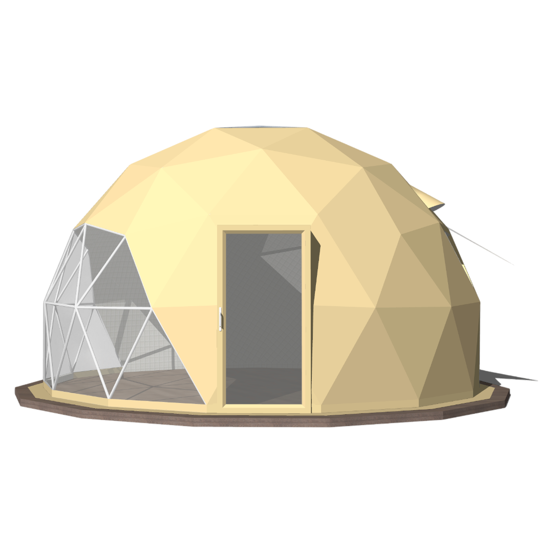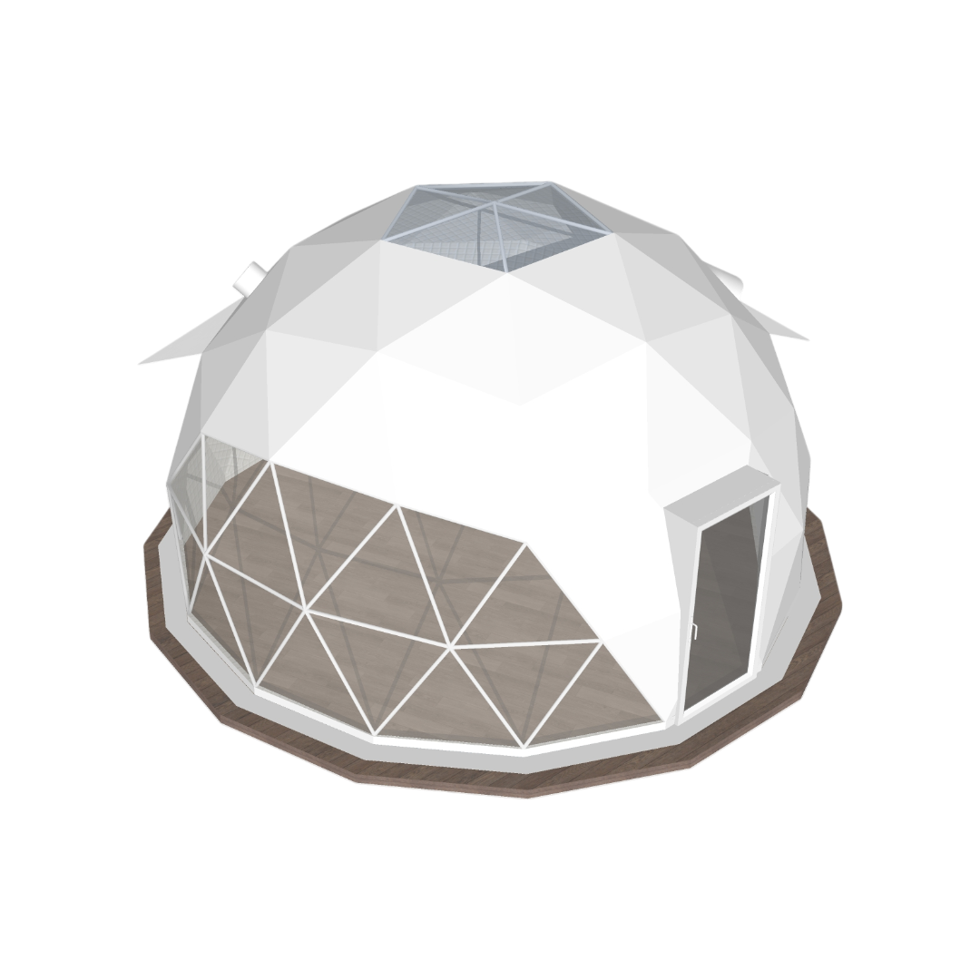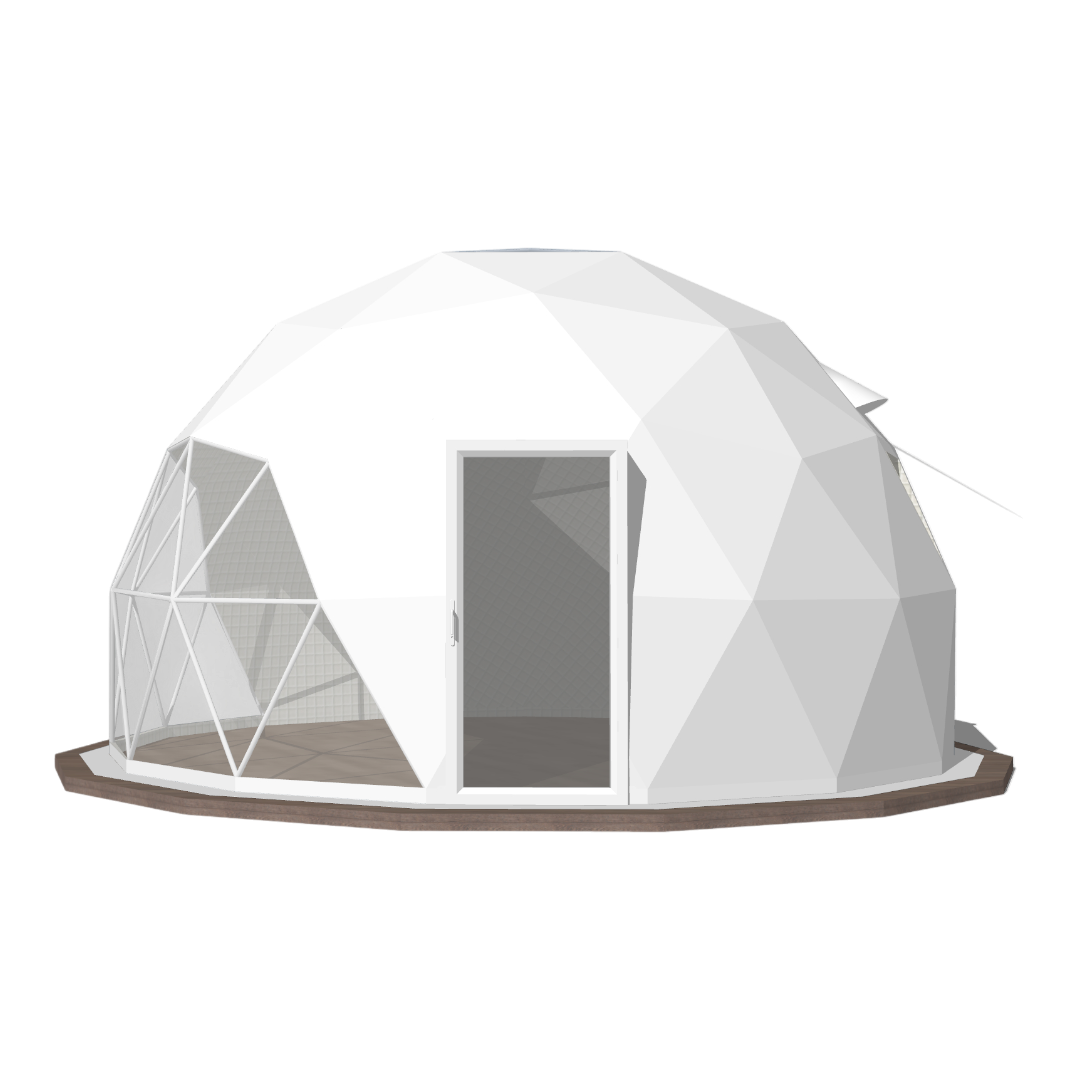 Søger du den ideelle kombination af rummelighed og ekstrem holdbarhed? Nordic Igloos 8 meter er det perfekte valg til dig, der ønsker en luksuriøs udendørsoplevelse i en mere alsidig størrelse. Med en diameter på 8 meter får du et imponerende og indbydende rum, der er ideelt til alt fra eksklusiv glamping og intime retreats til et unikt ekstra udendørsrum.
