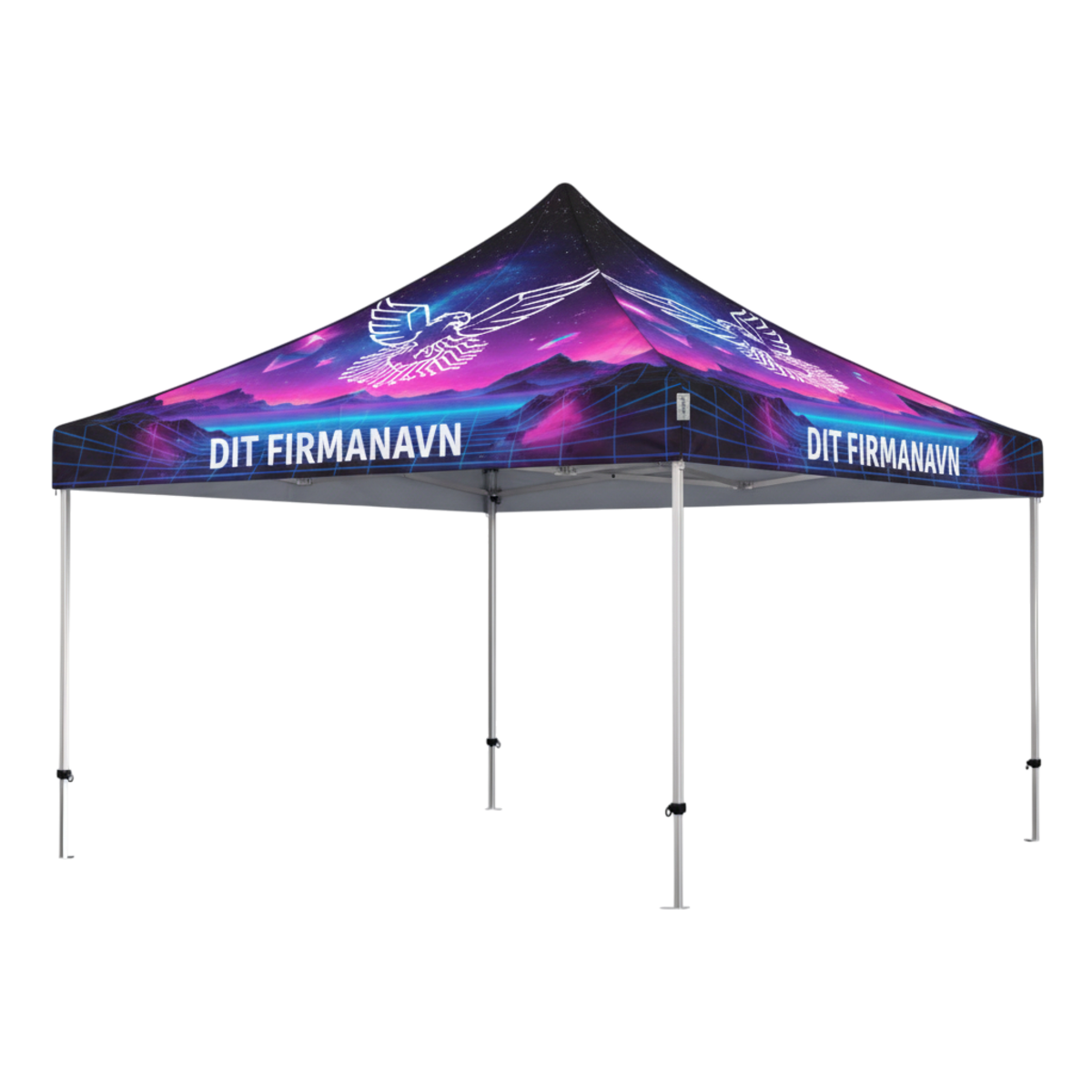 Fullprint på et foldetelt giver maksimal synlighed og et professionelt udtryk. Hele teltet kan designes med logo, farver og budskaber, så du skiller dig ud og tiltrækker opmærksomhed ved arrangementer. Kun fantasien, sætter grænserne.
