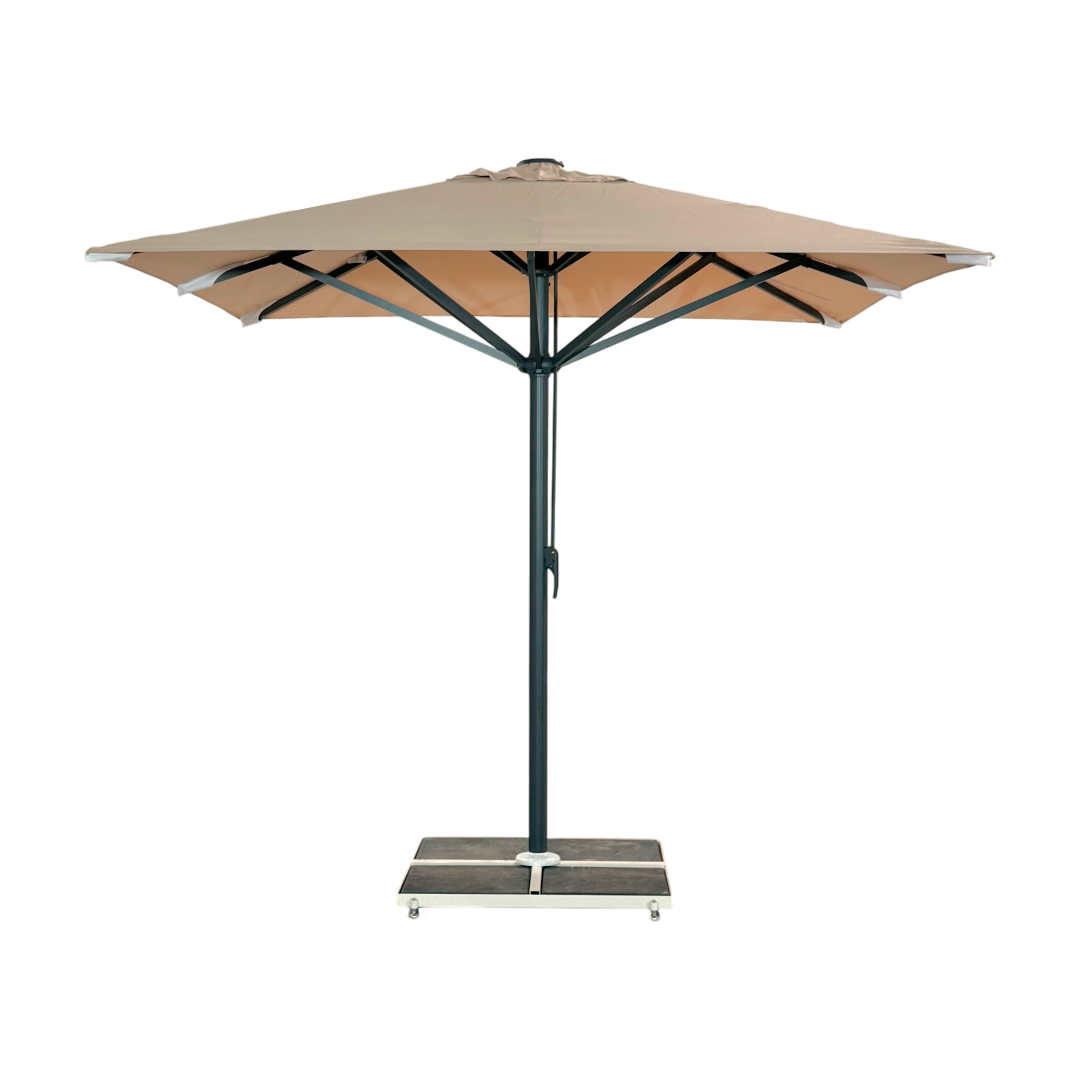 Kæmpeparasol 4x4m komplet u/frise – Gråt Stativ