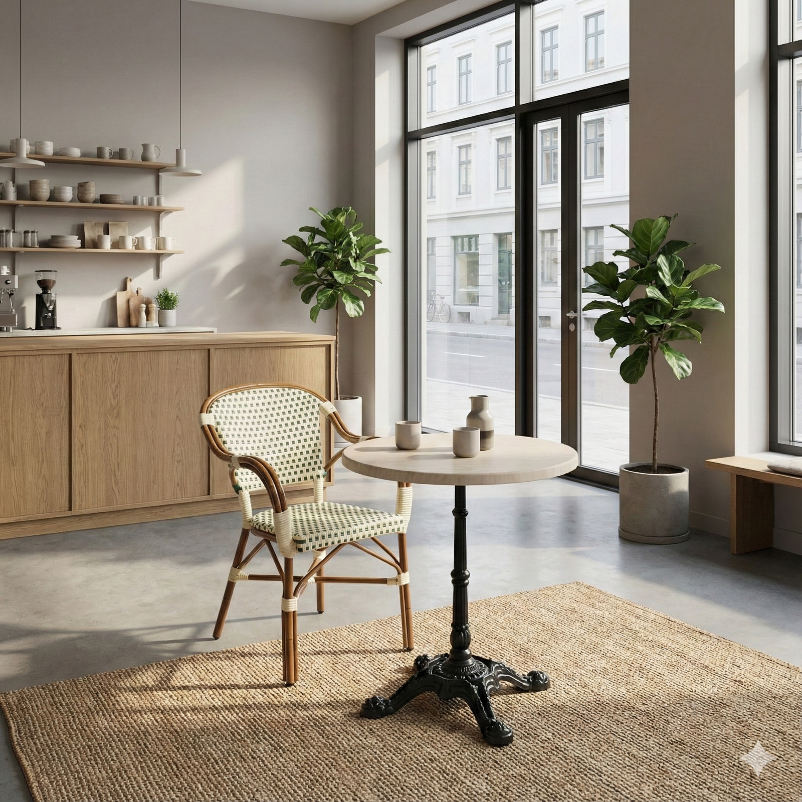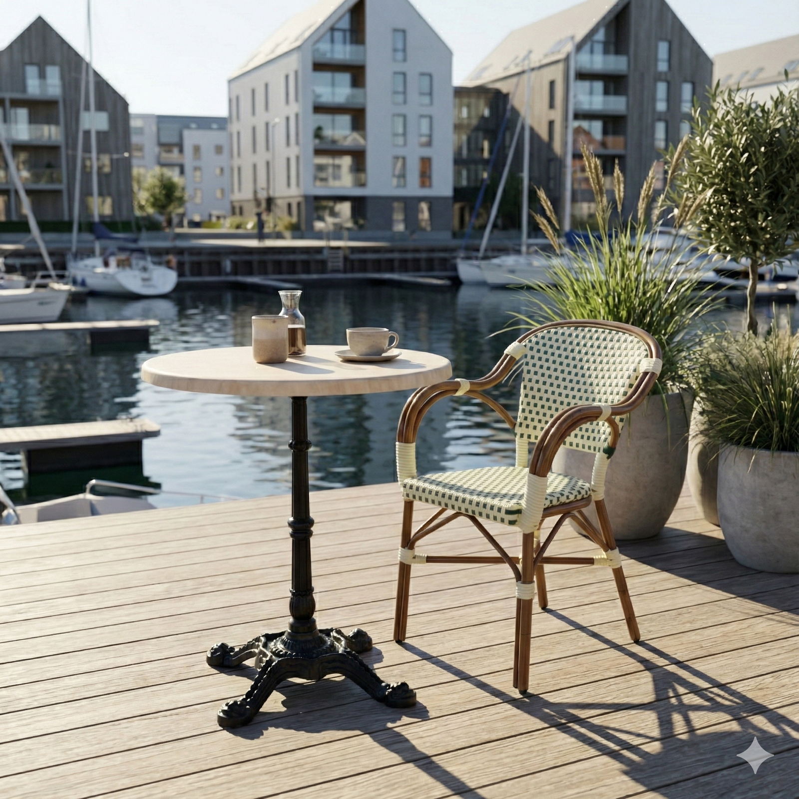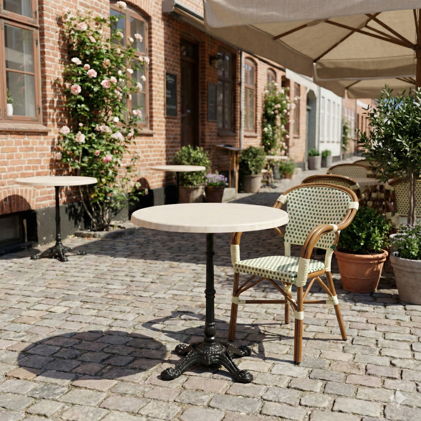 Den runde form skaber en naturlig og imødekommende bordopstilling, som understøtter en god gæsteoplevelse og fleksibel indretning. En professionel løsning for alle, der ønsker et stilrent marmorlook kombineret med lav vedligeholdelse og høj driftssikkerhed – både indendørs og udendørs.