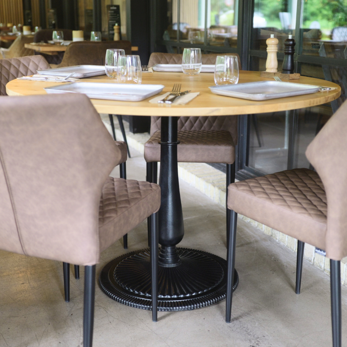 Moderigtig kunstlæderstol udført i brandhæmmende materiale. Stolen har et unikt udseende, der passer perfekt til enhver lejlighed. Noah serien indeholder også en barstol se art. nr.: 104854