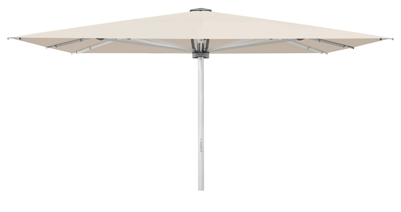 - Brugervenlig betjening: Udstyret med en integreret håndtag- eller motorbetjening, der gør det nemt at åbne og lukke parasollen, selv ved denne størrelse. Motoriseret betjening skal tilkøbes