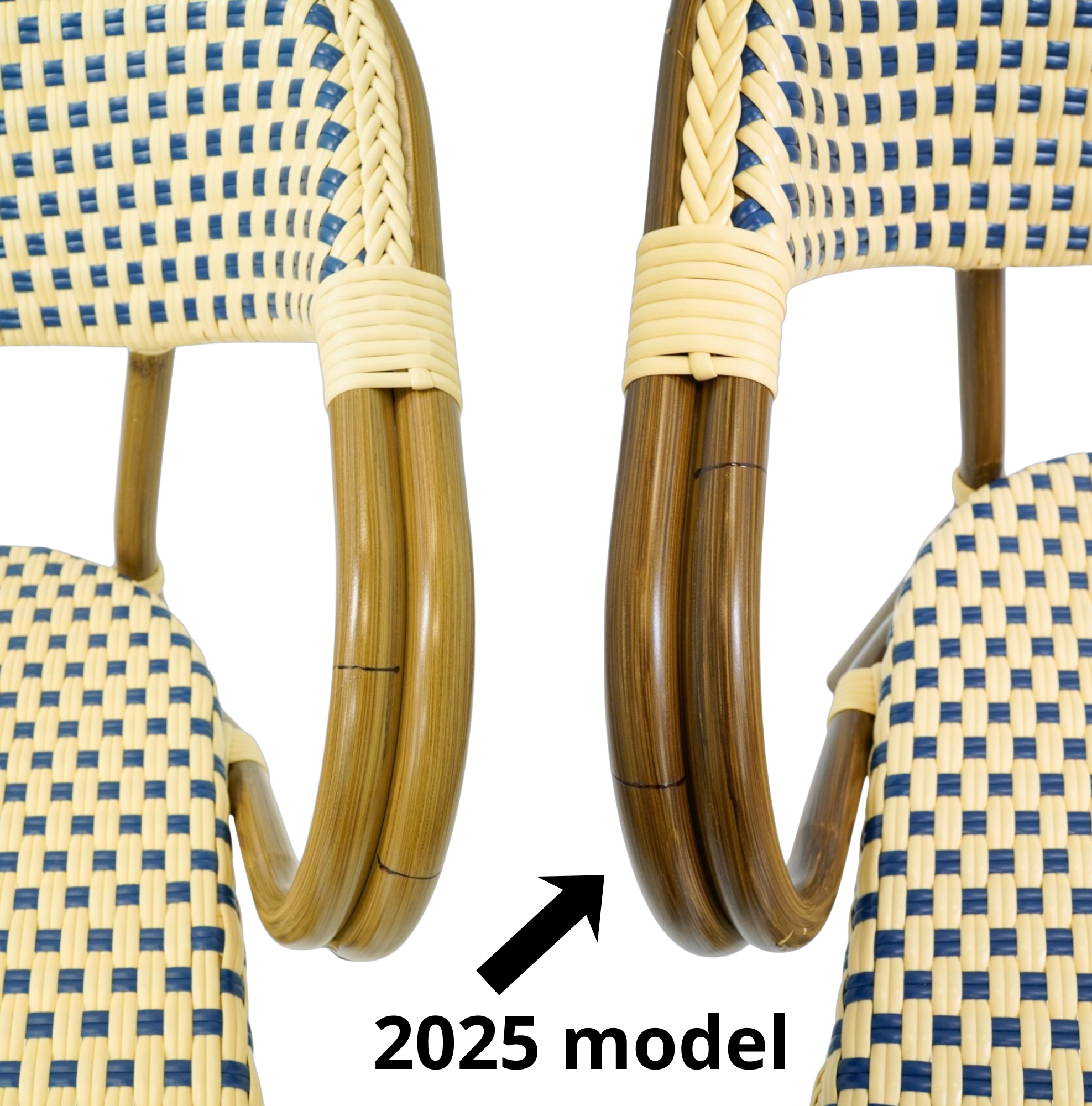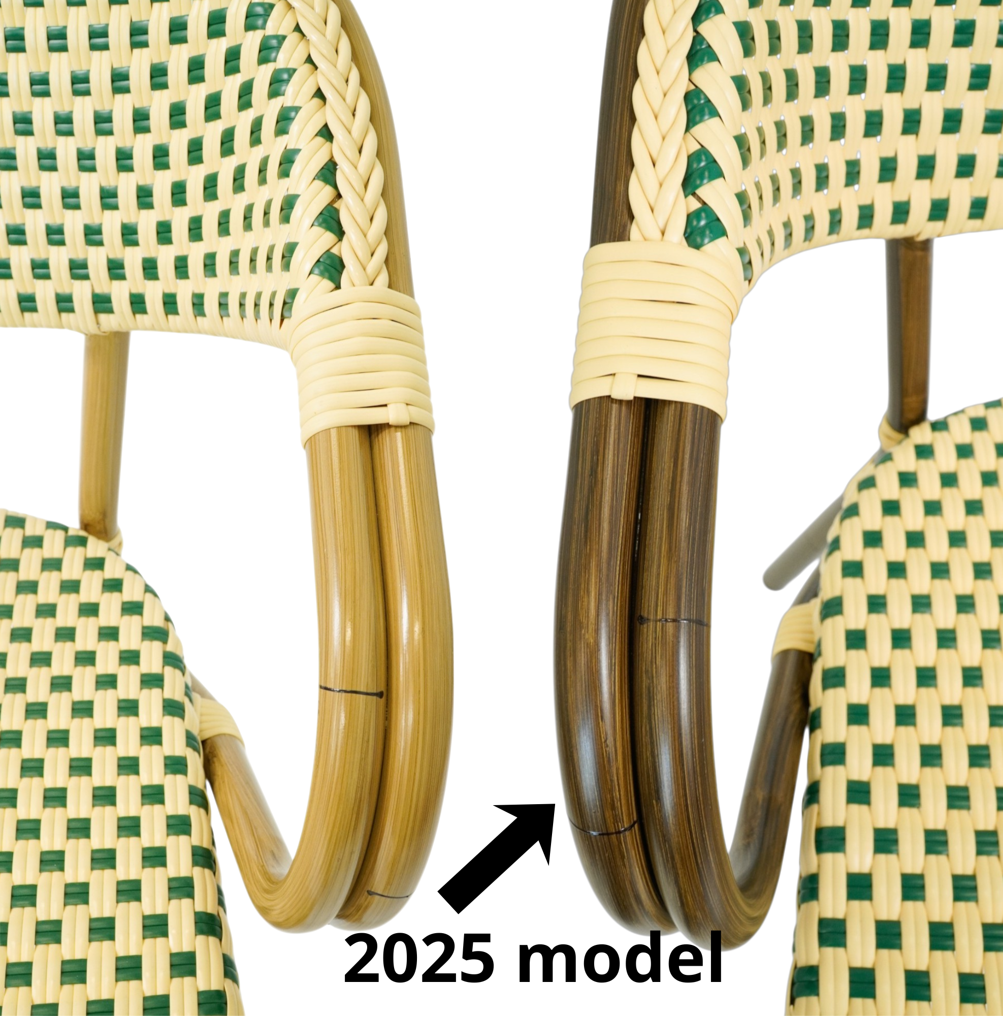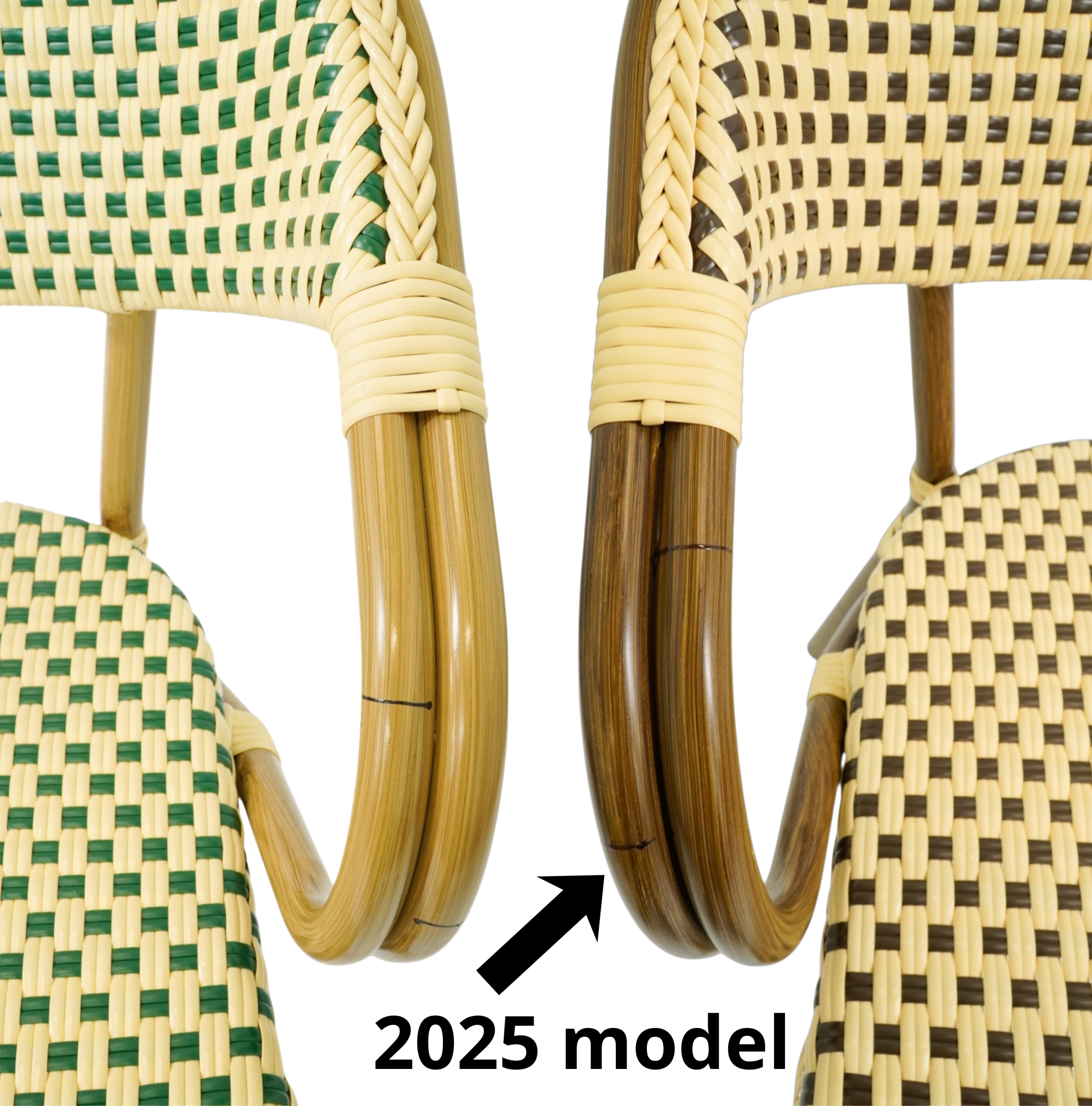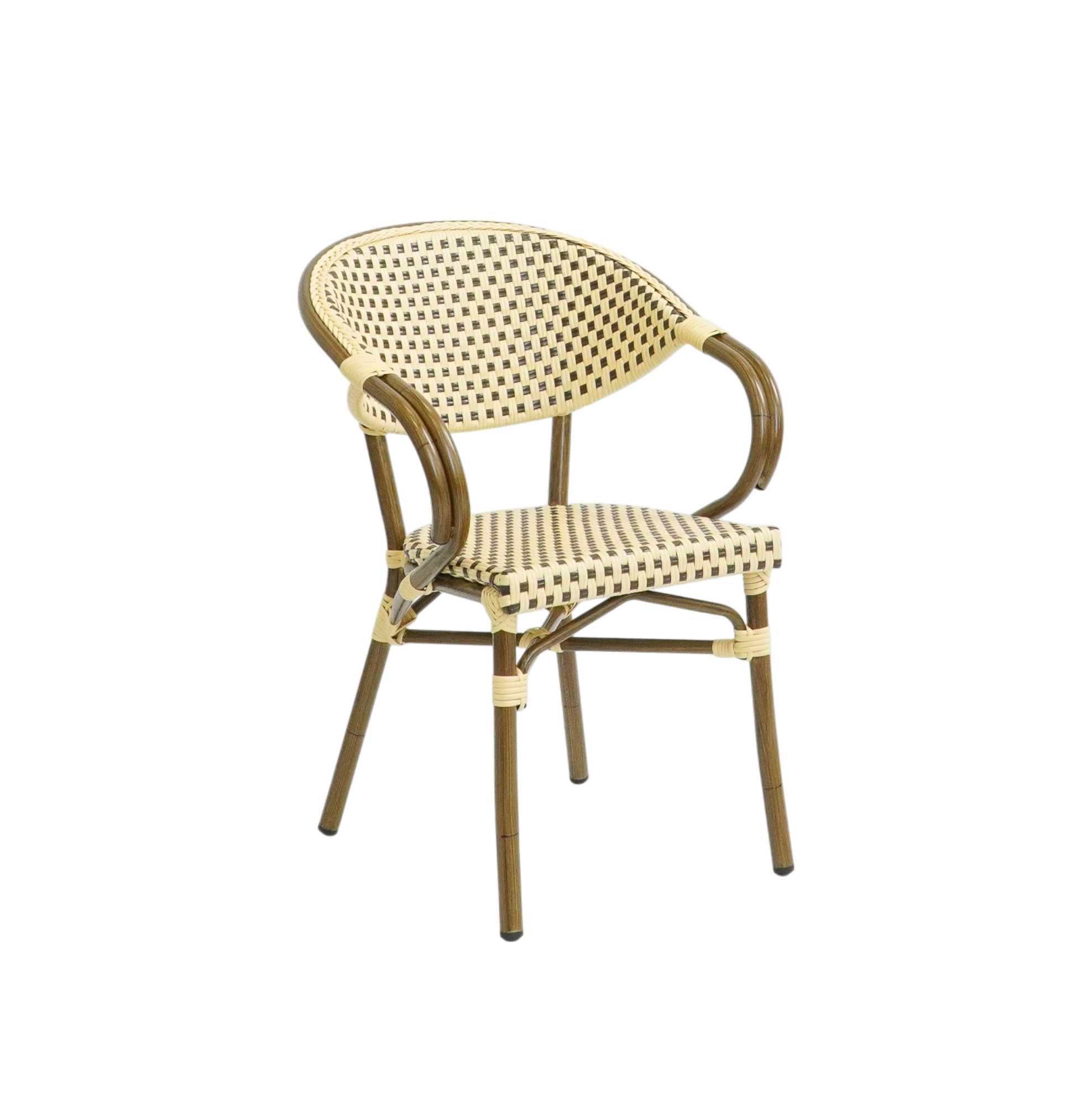 Designet er stadig det velkendte cafélook med flettet sæde og ryg samt de karakteristiske buede armlæn, som skaber en autentisk parisisk bistrostemning. Stolen passer perfekt til caféer, restauranter, hoteller og andre serveringssteder, hvor der ønskes et klassisk og indbydende udtryk på terrassen eller i udendørs serveringsområder.