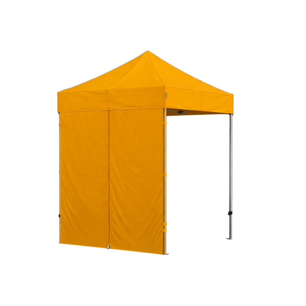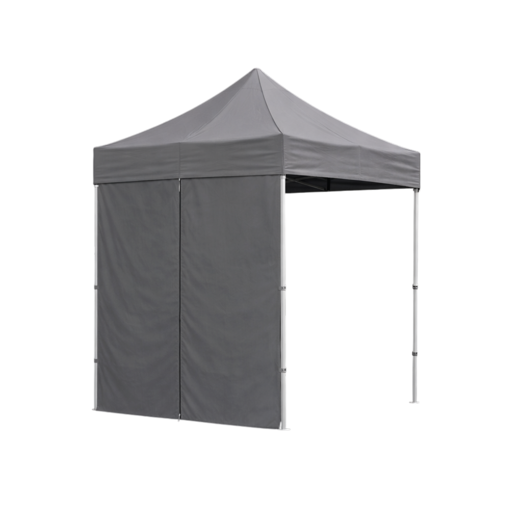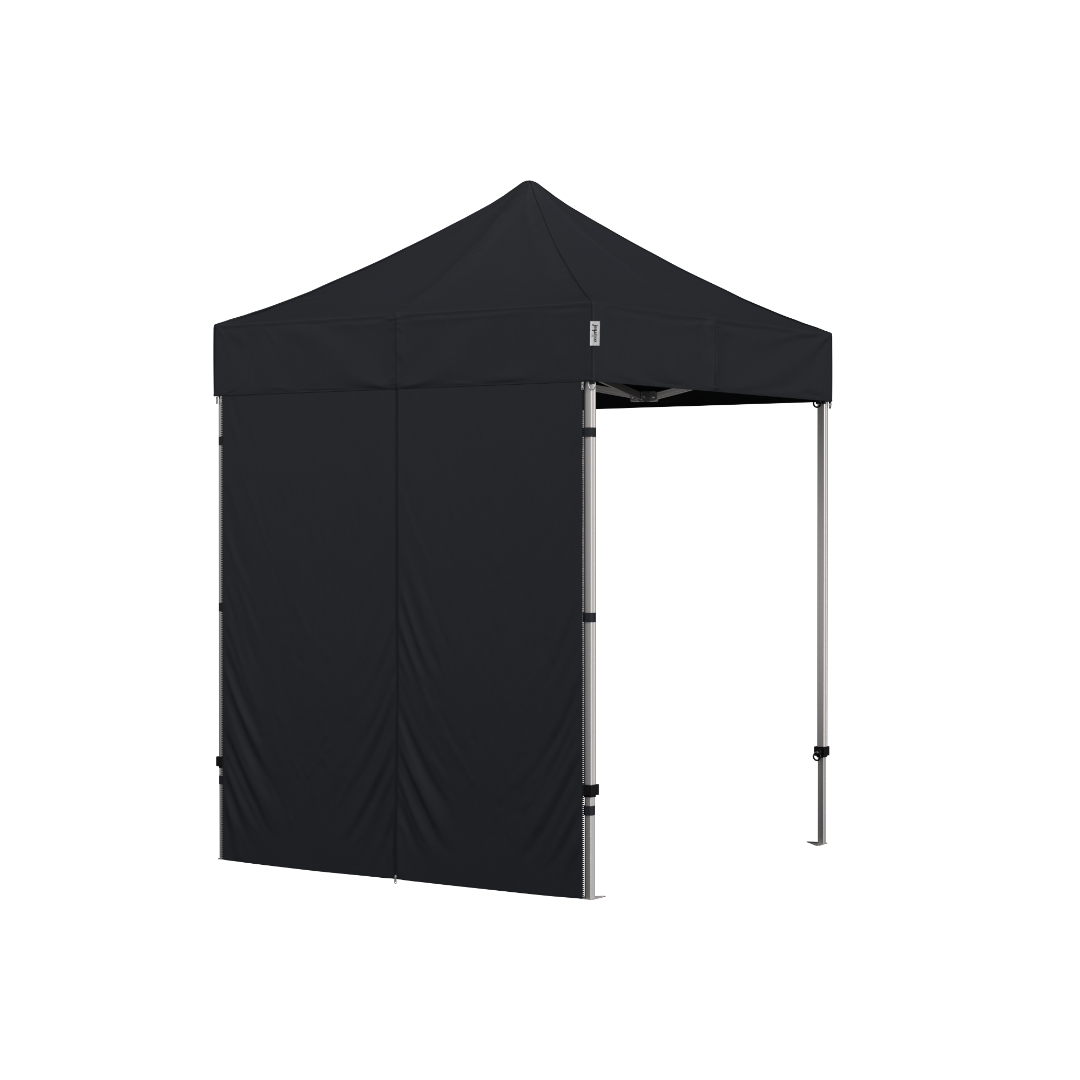 Lukket side til StandUp foldetelte med lynlås I midten.
