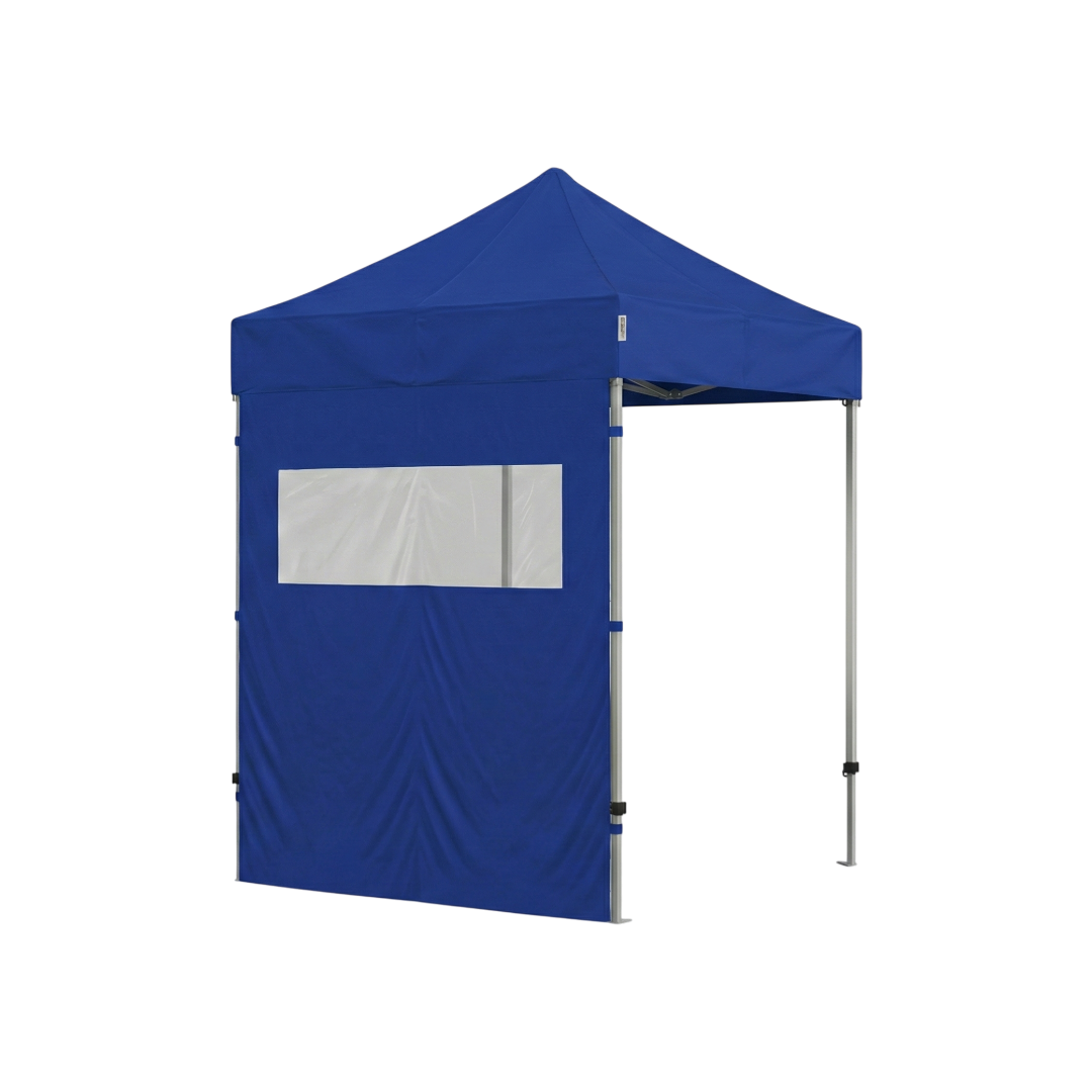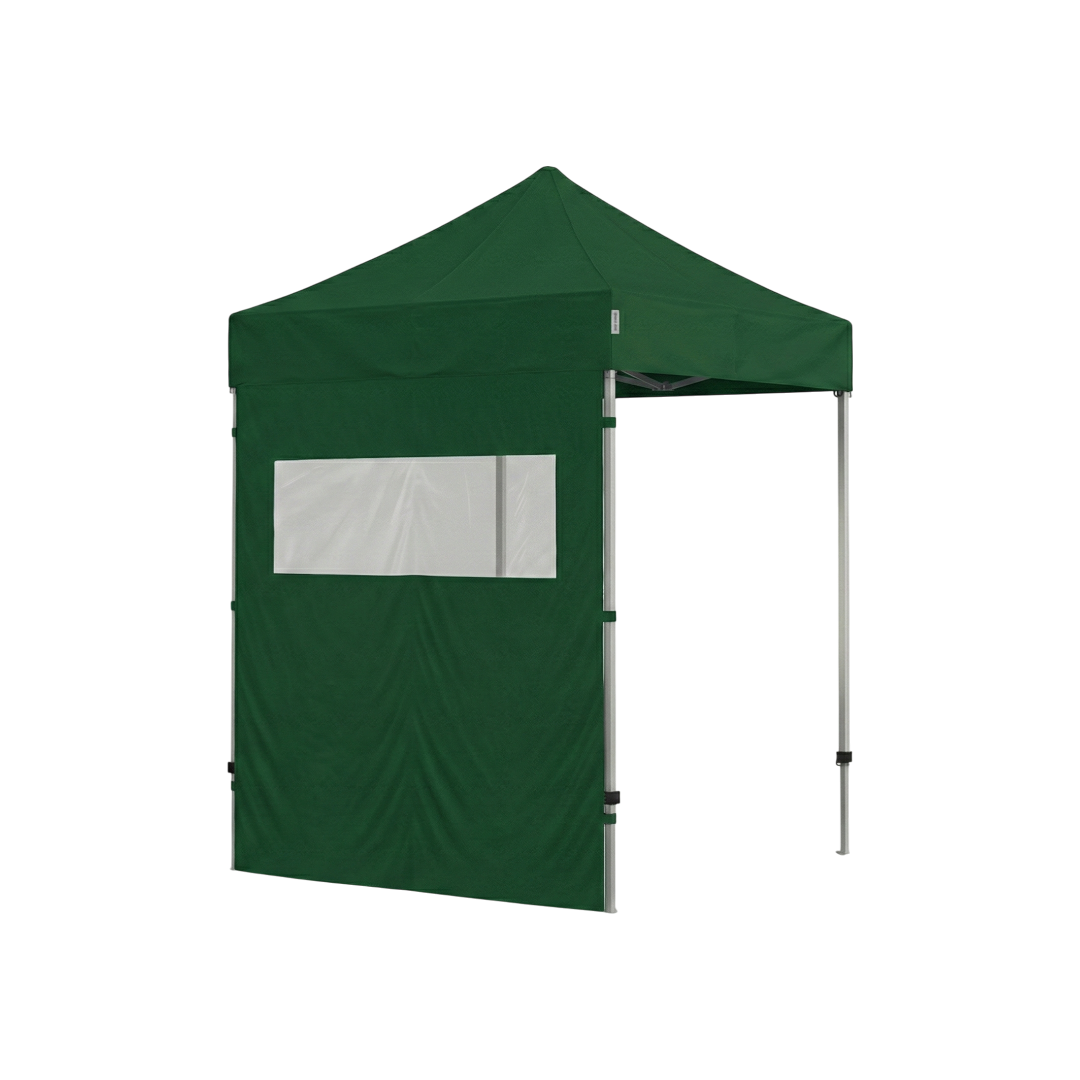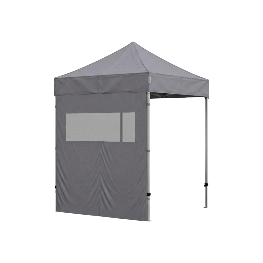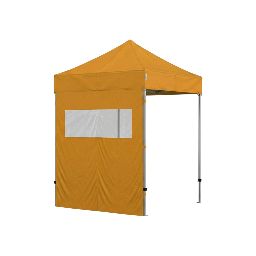 Lukket side med vindue lavet af gennemsigtig, kraftig plast. Siden giver ingen adgang til foldeteltet.