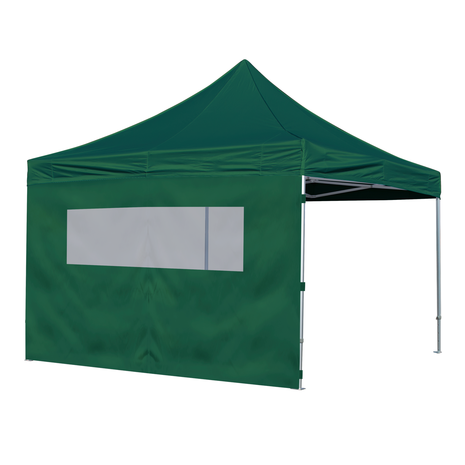 Lukket side med vindue lavet af gennemsigtig, kraftig plast. Siden giver ingen adgang til foldeteltet.