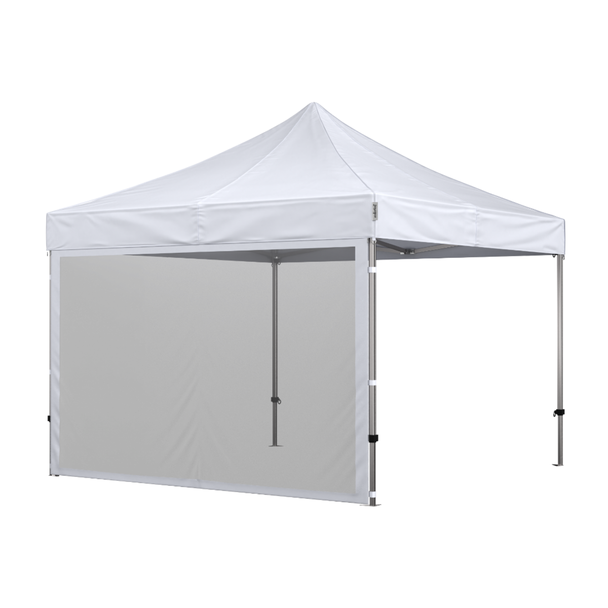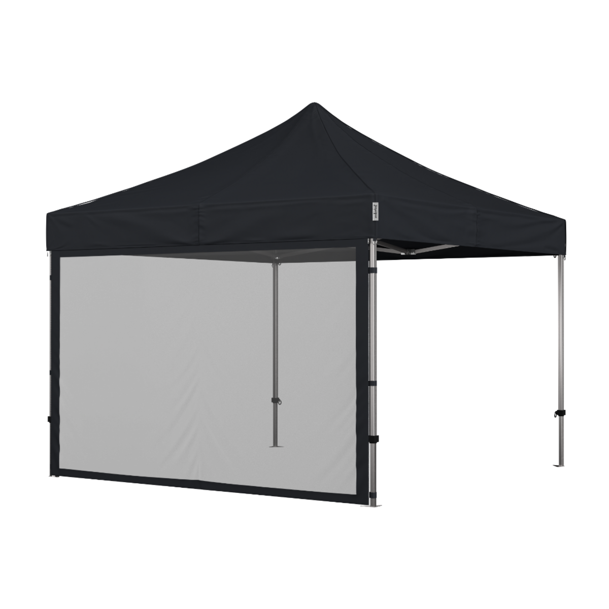 Lukket side med stort panoramavindue lavet af gennemsigtig, kraftig plast. Siden giver ingen adgang til foldeteltet.