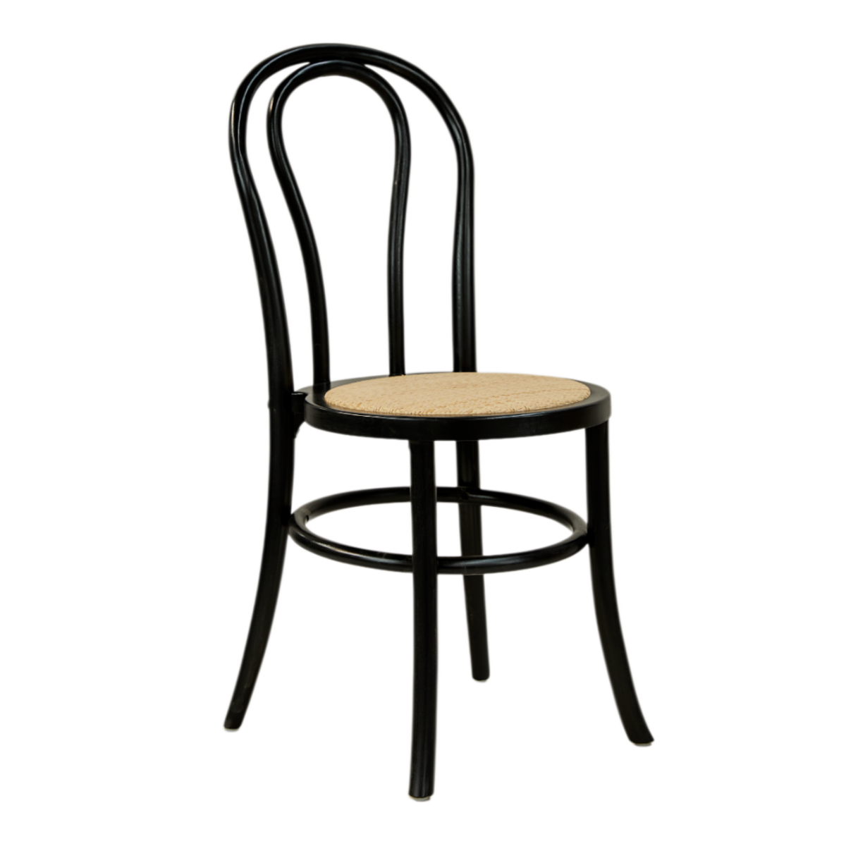 Tilføj en tidløs og sofistikeret charme til dit interiør med denne smukke Wienerstol i sort træ og lyst fletsæde.  Inspireret af det ikoniske 1800-tals design, bringer stolen både æstetik og funktionalitet til caféer, restauranter, events eller lignende professionelle settings.